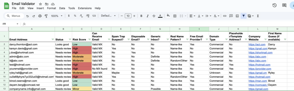 Clean, categorize, and score your email lists – directly in Google Sheets.