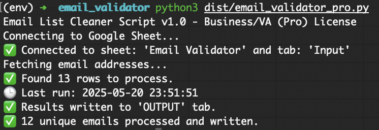 This email validator script helps you quickly assess whether email addresses are worth emailing — and whether they might hurt your sender reputation. It runs directly on your Mac using Python and Google Sheets, with no need for third-party validation tools.